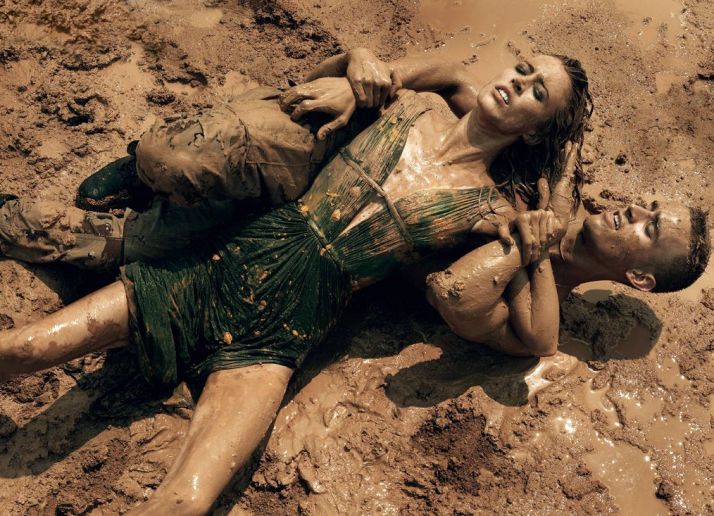 The war in Iraq was given it’s own fashion serving with an editorial that had nearly naked models camped with sexually charged male models. With the title “Make love. Not War” there was less left for us to imagine. The female models draped in A list designer names such as Louis Vuitton had their fair of this in the company of male models in full military gear.
