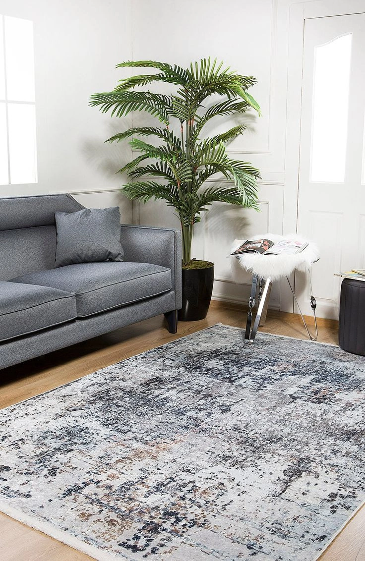 Layer a large neutral rug under your furniture to ground the space. You can even mix smaller rugs in different zones for contrast.