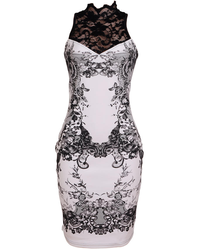 7. Bodycon dress with lace chestline, black/white, USH 83,000