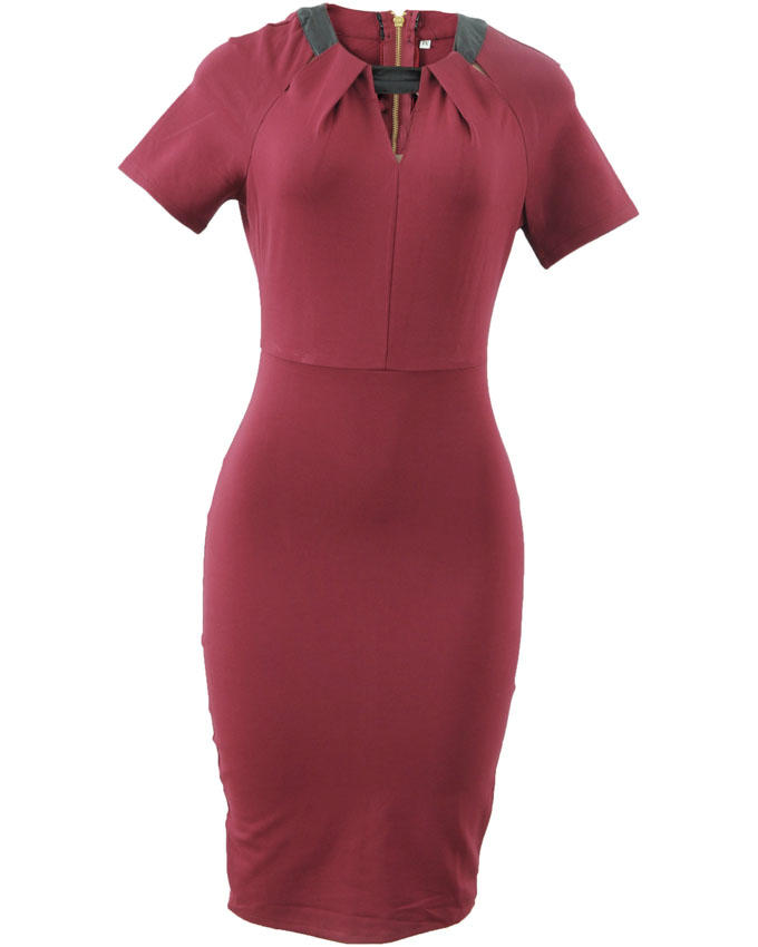 6. Bodycon dress with leather detail, maroon, USH 54,000