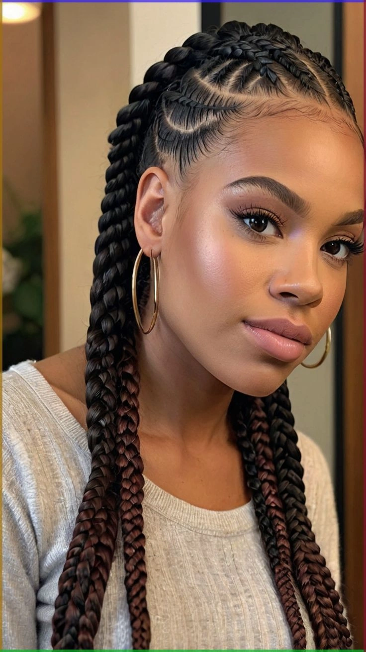 Goddess braids are essentially thicker cornrows, often styled with a dramatic twist. Bold and eye-catching, these braids lie close to the scalp and are perfect for those who want a regal, sculptural style. Often adorned with accessories or braided into updos, goddess braids are both fashionable and functional.