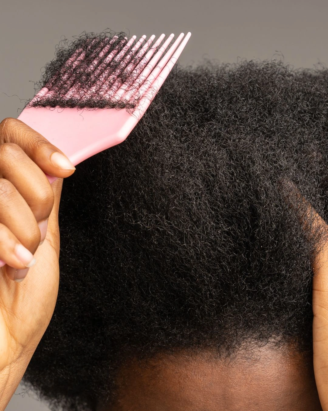 Use a wide-tooth comb or your fingers to detangle your hair gently. Always detangle when your hair is wet and slippery with conditioner to avoid breakage.