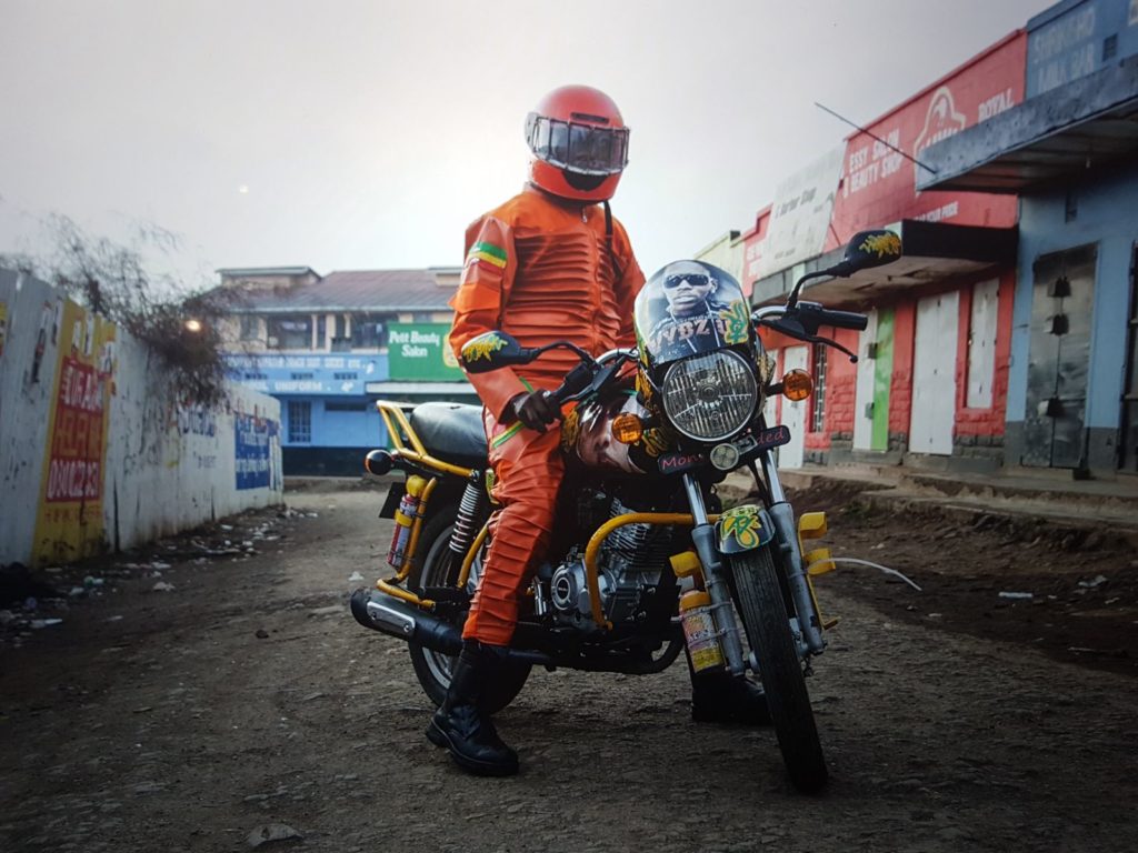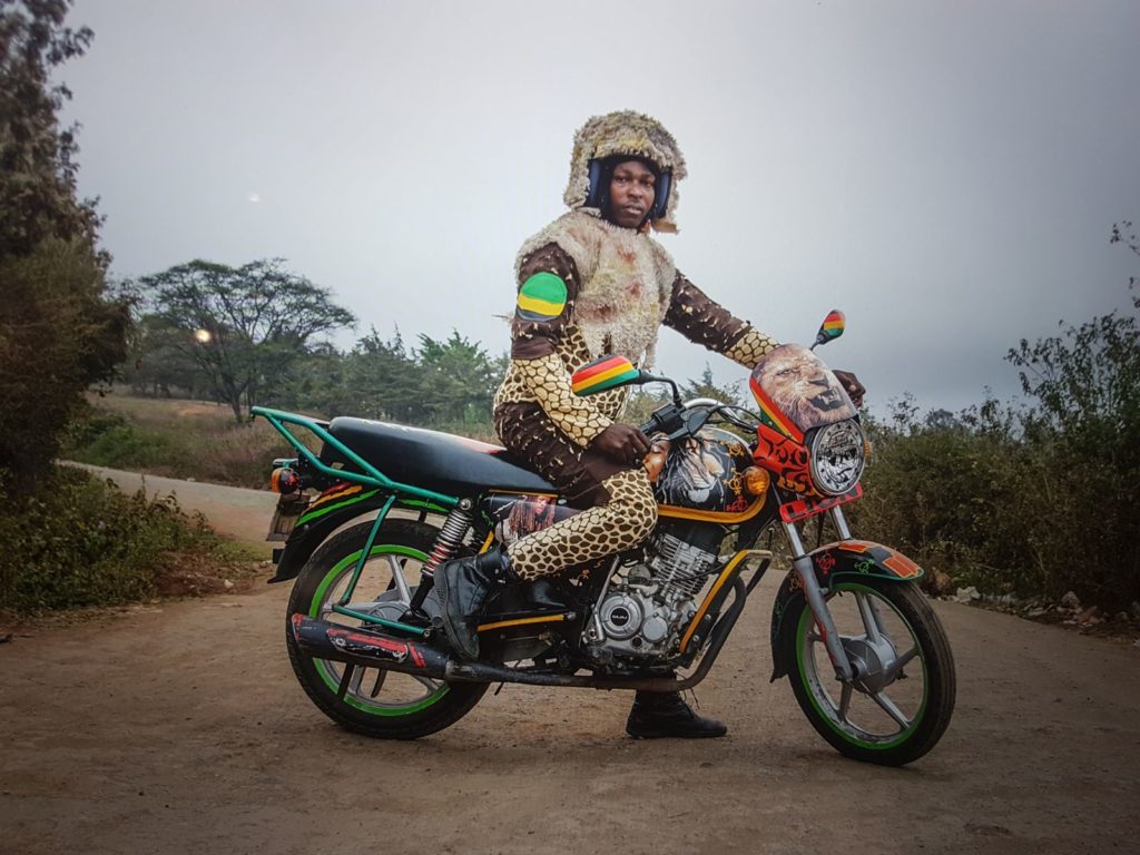 Boda Boda Madness was a project inspired by Nairobi’s famous colourful motorcycle taxis known as Boda boda. Nairobi boda boda riders use art and colour to pimp their bikes to stand out from the rest and in the end attract customers. These creative men paint their bikes with interesting designs and motifs, something that fascinated the designer. What they always miss though, are cool costumes to match with their colorful bikes.