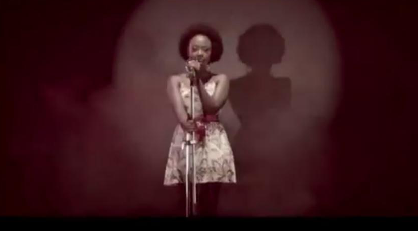 She wore an Afro and a floral dress as she serenades us in the video.