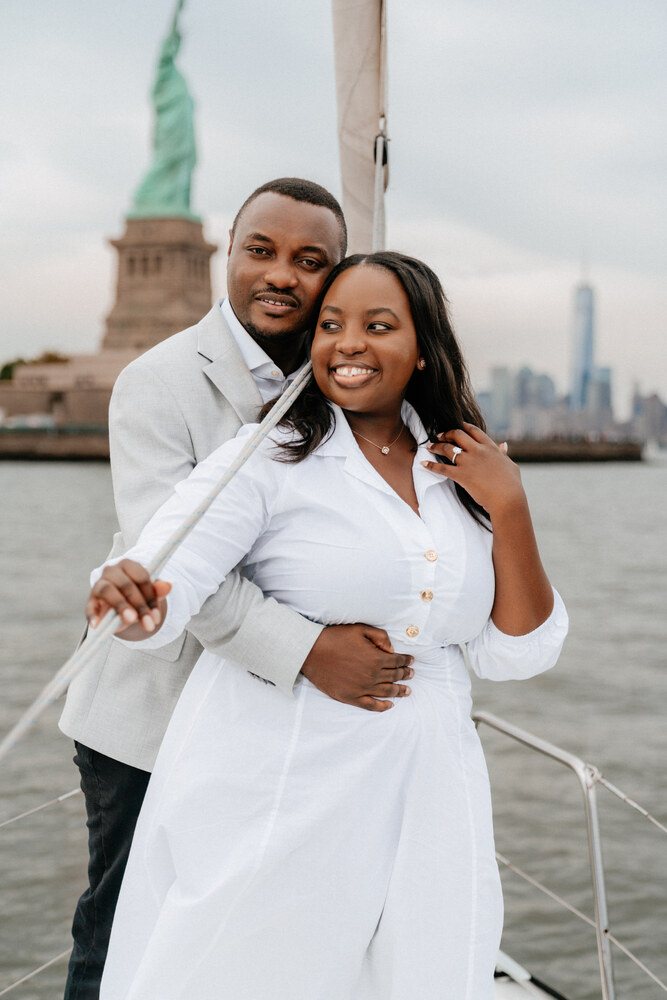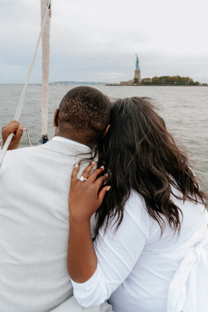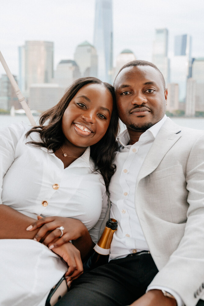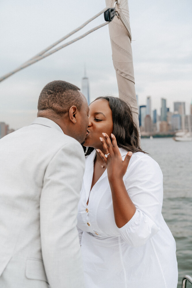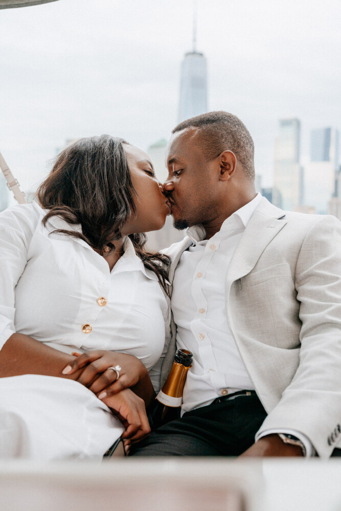 So Andrew gets on his knees as I’m looking at the NYC skyline and asks me to marry him while we’re standing at the bow of the boat and I was screaming a resounding YES due to shock and joy. I couldn’t have asked for a better man! God truly did His big one when he put us together and I give Him all the glory.