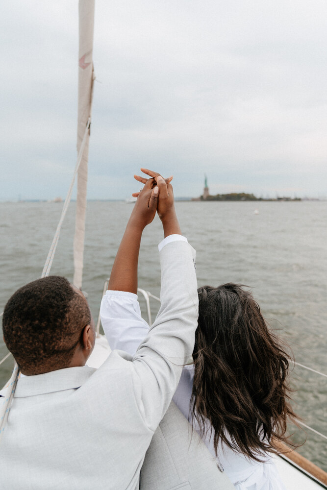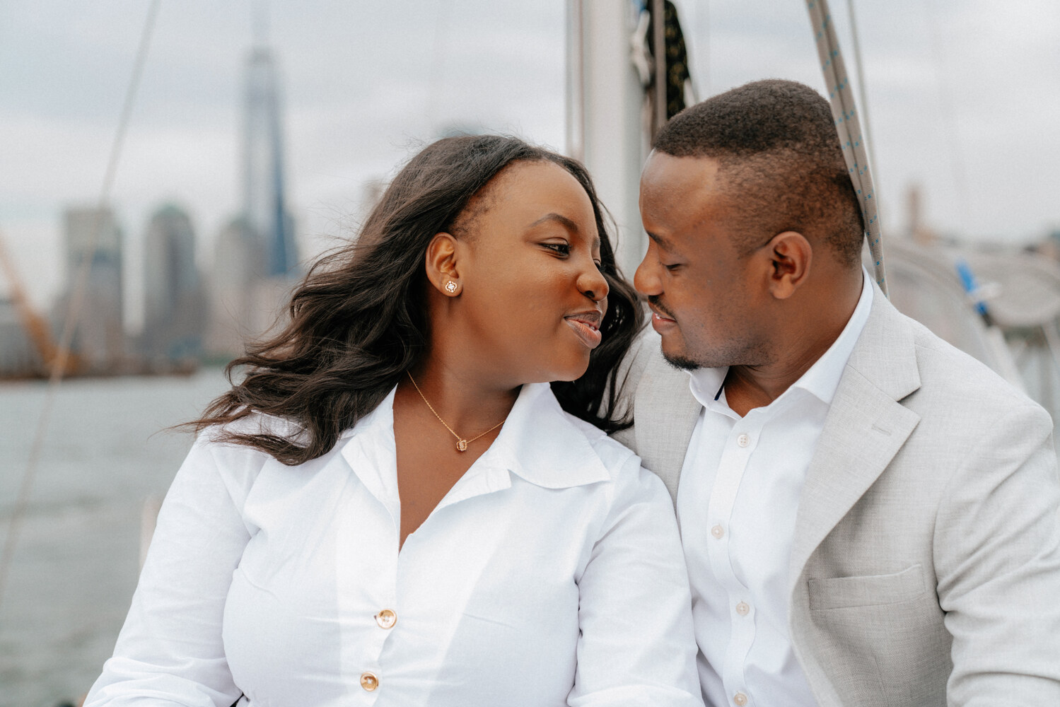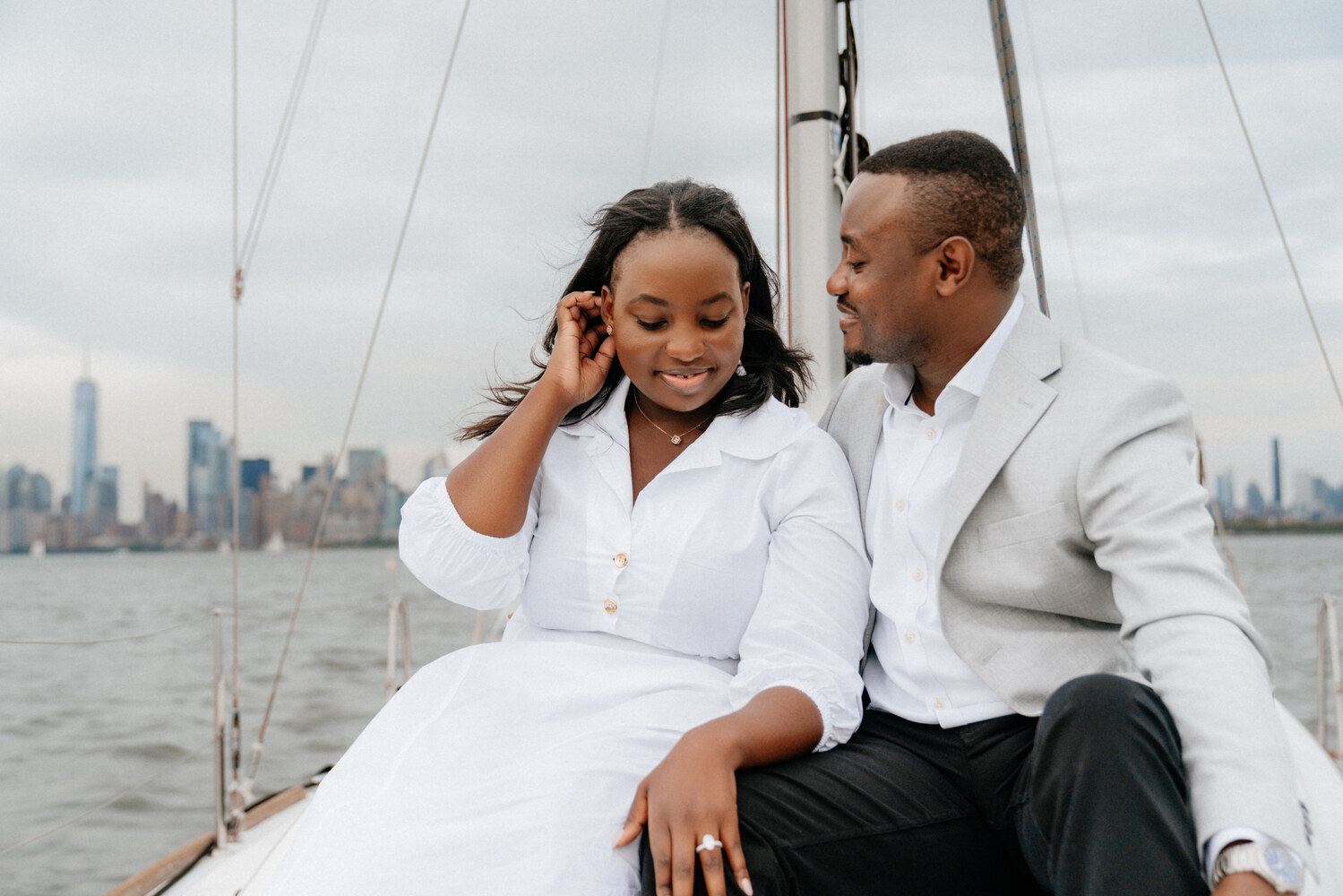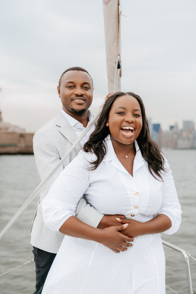 So Andrew gets on his knees as I’m looking at the NYC skyline and asks me to marry him while we’re standing at the bow of the boat and I was screaming a resounding YES due to shock and joy. I couldn’t have asked for a better man! God truly did His big one when he put us together and I give Him all the glory.