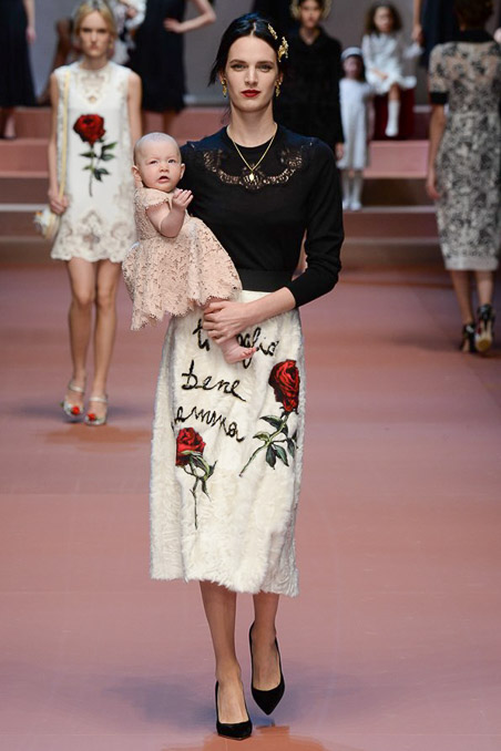 Dolce & Gabbana’s fall 2015 show paid tribute to mothers. “Viva Mamma!” the show notes read. And though some of the designs—dresses printed with kid scribbles à la Angelina Jolie’s wedding veil—might have been too heavy-handed in their tribute, the collection was an ode to the elegance, the beauty, and the resilience of the mom.