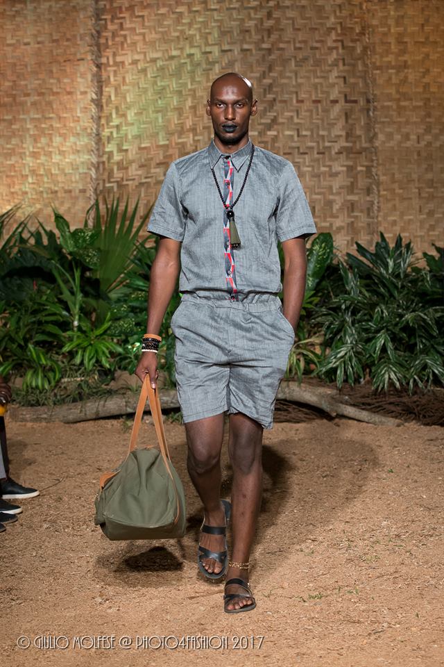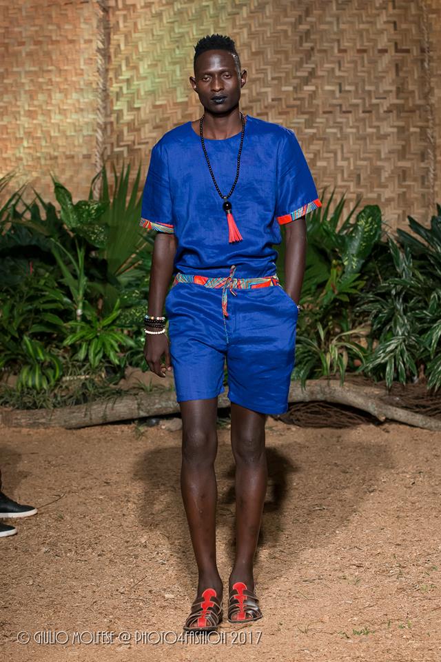 Eguana Kampala is known and loved for their use of African prints. For their SS18 collection they didn’t just have those, but an array of geometric prints as well. These prints were seen on pant suits, dresses and jackets. They also had sporty looks; a matching set of pants and a jacket and also man-rompers. Who said the man-romper was anything but tasteful? The rompers looked wearable and very comfortable on the body. The sleeves and plackets of the rompers had the collection’s signature geometric print.