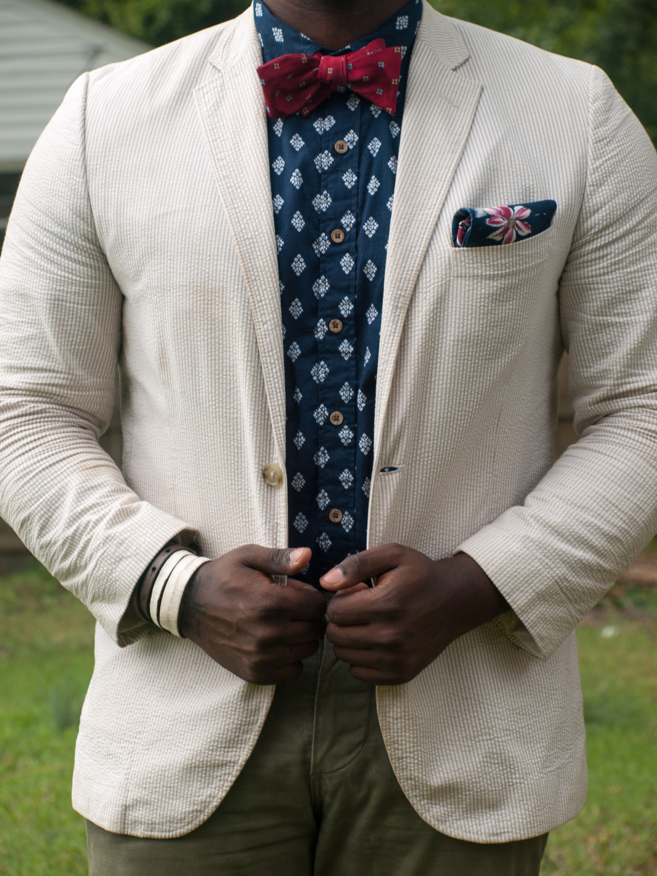 There’s no need to go all out all filled with flower petals. All you need is a little sprinkle somewhere. You could choose a floral print bow tie and keep everything else simple and polished. Add just one tone of the print to your rather monotonous look and see the magic.