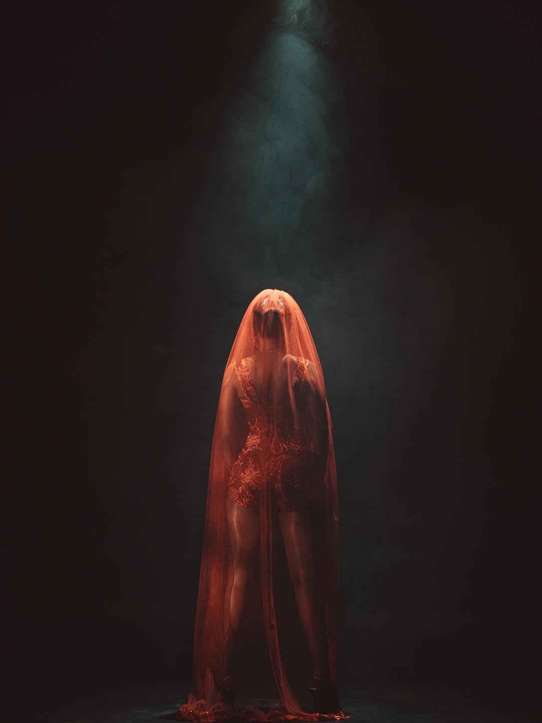 Both final looks, one red and one white were designed to embody sensuality and elegance with a bold twist. “The director wanted to push sexiness but also go against the grain by adding veils to both outfits,” Solomon said. “It was about mixing sensuality with a bit of mystery.”