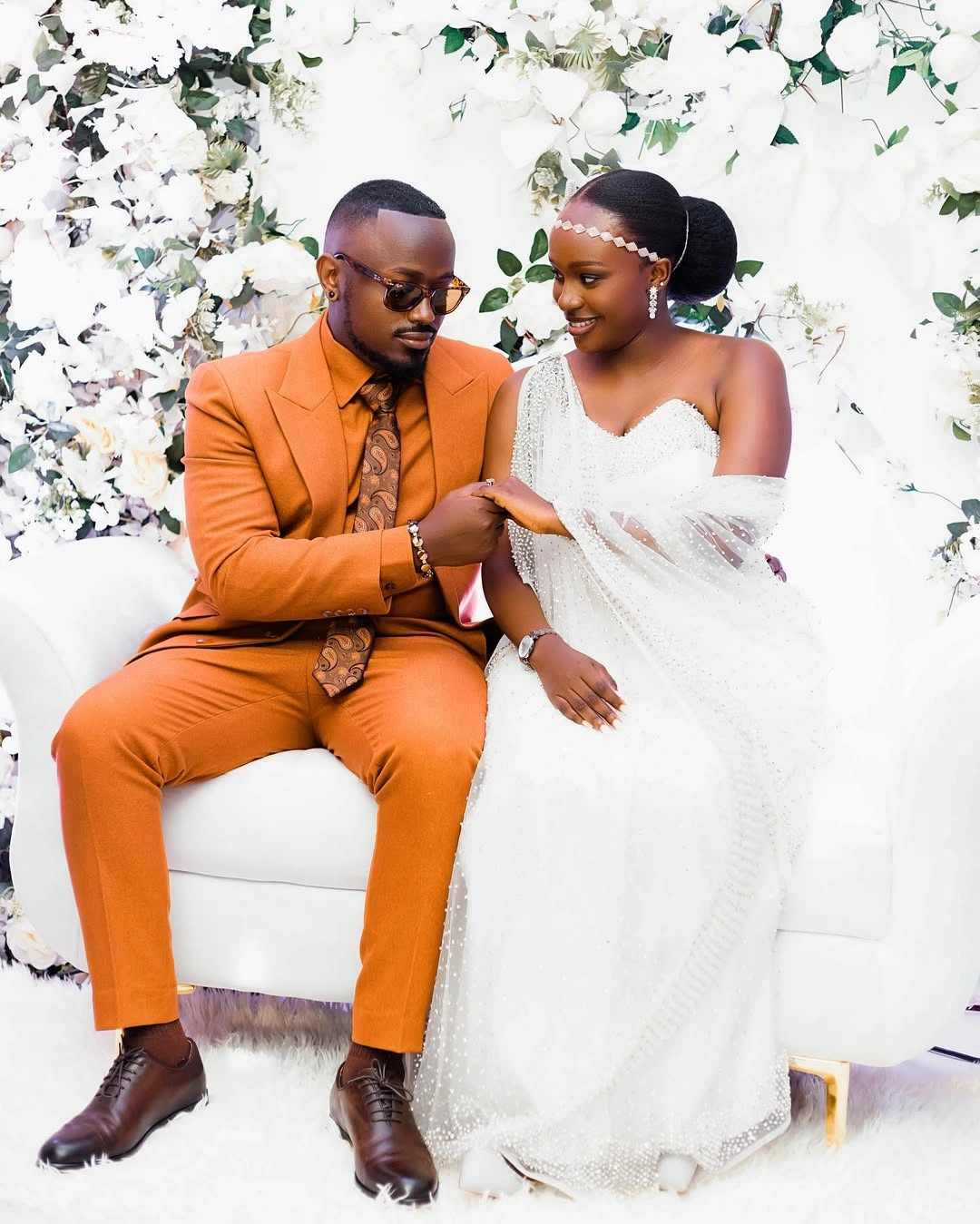 The kukyala marks the start of two traditional ceremonies, leading up to the official exchange of vows at the wedding. Continuing their color scheme of brown and white, Ykee wore a monochrome brown suit, while Emily wore all white. See photos below.
