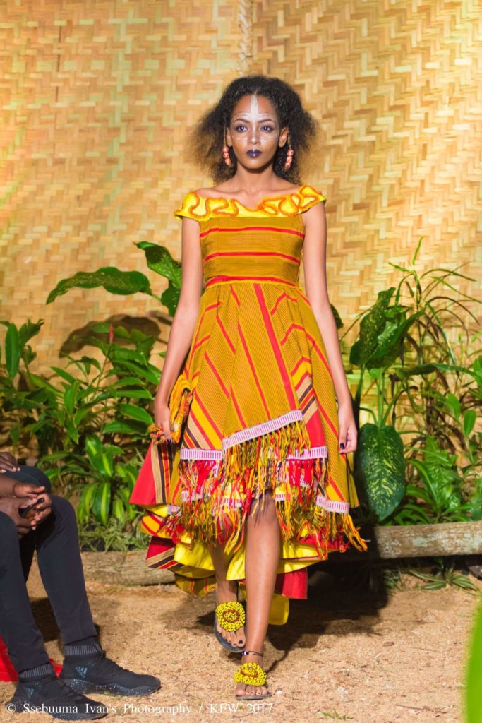 It’s a great opportunity for new designers to be put on a platform as influential as Kampala Fashion Week to follow in the footsteps of former winners Olivia Nanfuka and Say-Mandah who are showcasing today (day2 of the event). The highlight of the show was of course the crowning of the winner Joanita Nakigudde whose creation was made out of maize cobs and egg shells. The young designers traveled to Fort portal to get extensive training in the use of organic material and dyeing.