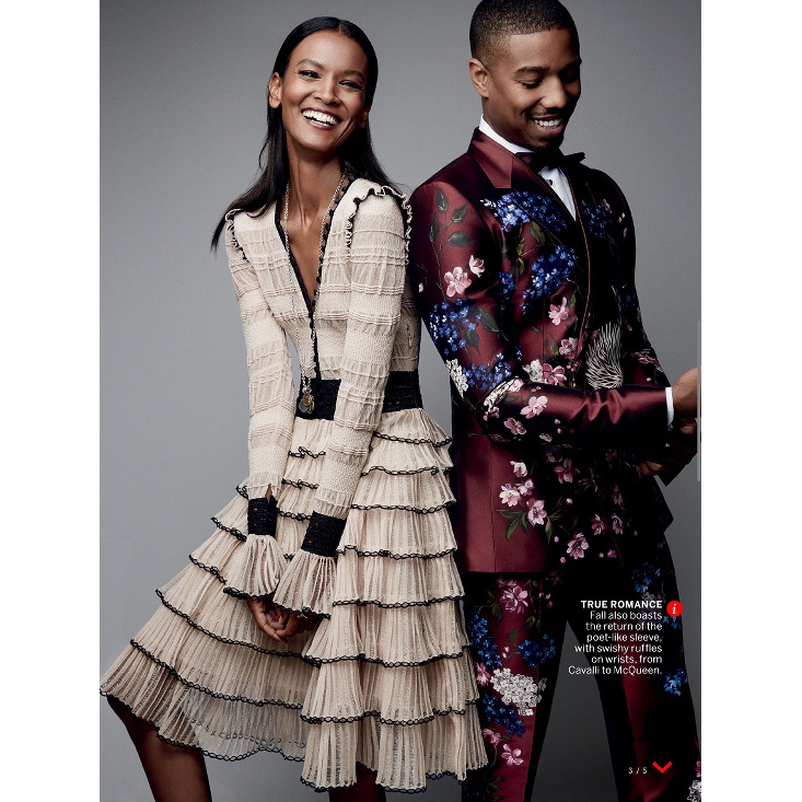 Ethiopian supermodel Liya Kebede and Hollywood hotshot Michael B. Jordan join forces for a bold high fashion spread in the August 2015 issue of Vogue Magazine! Shot by famed fashion photographer Patrick Demarchelier, the two stars wear florals and frills as fashion editor Tabitha Simmons shares what is in store for this years Fall fashion! Lets take a look at the fashion filled editorial shots below!