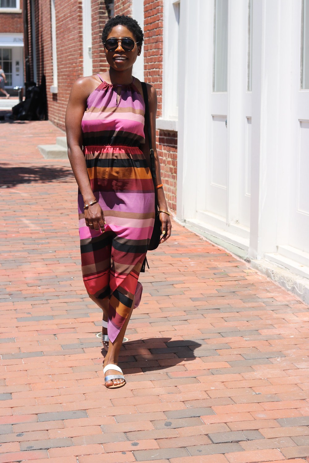 I thrive when am in a maxi dress that is flattering and has the perfect fabric for humid temperatures and the right colors for a bright day. This maxi makes it to the top for me when it comes to selecting a maxi that is comfortable and stylish. I am a sucker for anything stylish but not over the top. I recently purchased these slide sandals and I have to say, bingo. They are very comfortable and versatile. I know some of you might think all slide sandals are comfortable and what not but actually not all of them are. Slide sandals with soft bottoms that are not too harsh on the soles of the feet are super comfortable. Remember not all sandals are made that way.