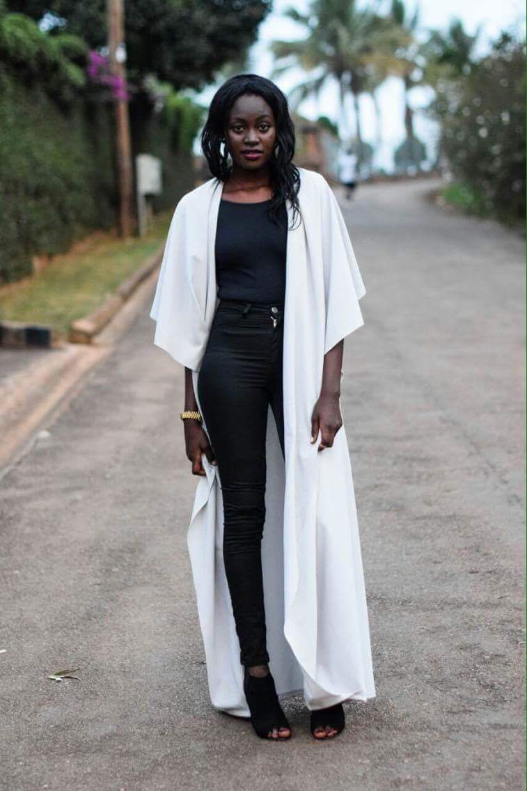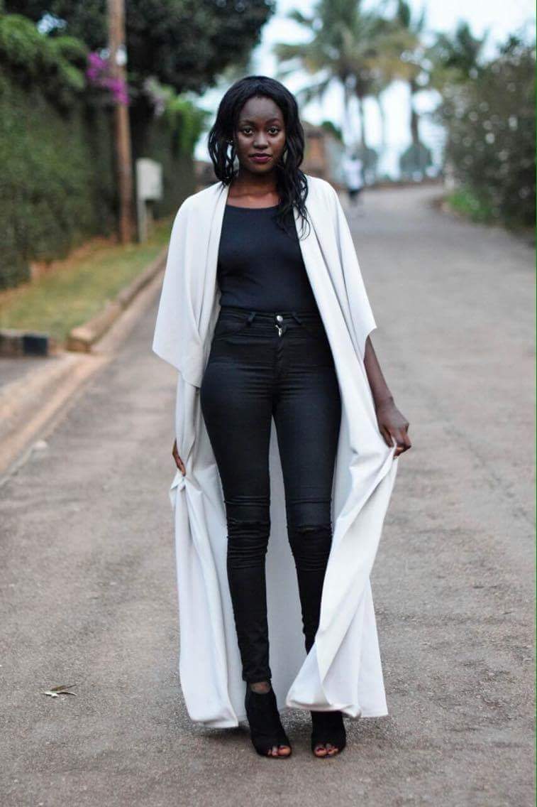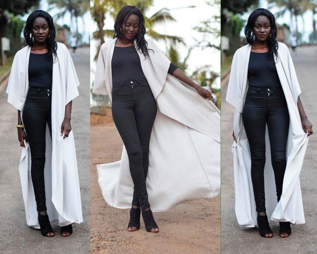 I’m wearing a waterfall long throw-on over a black bodysuit under a pair of black pants. You can now guess my favourite colour, can’t you?