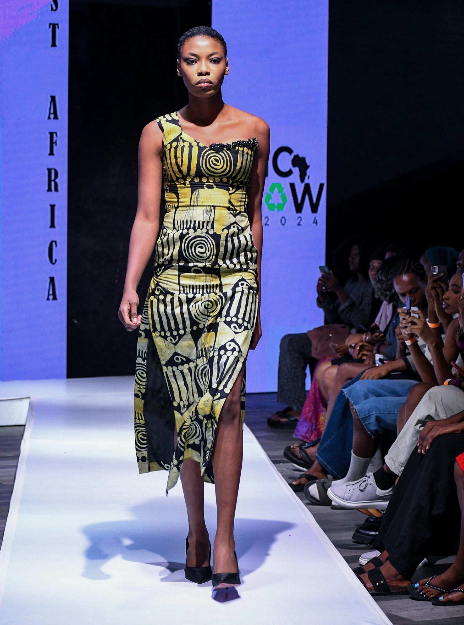 The tailoring was precise, crisp in the shoulder with a deliberate drop at the waist, inviting a feminine strength that didn’t sacrifice elegance. The motif, subtly mirrored across the collar, cuffs, and hem, tied the look together in a way that was less literal and more lyrical. For a brand with a footprint that spans West, East, and Southern Africa, this was a fitting declaration: Nella Stitches is not just a South African label it is pan African at its core.