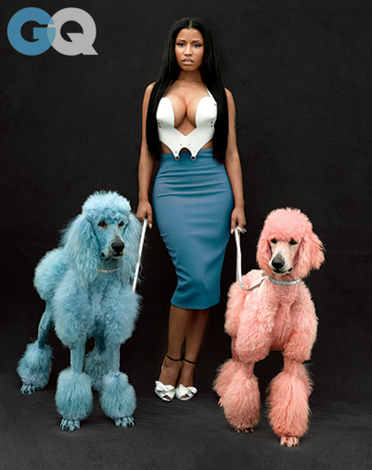 The award-winning rapper stars in a spread for the November issue of GQ US titled ‘Cheeky Genius’. She puts her amazing curves on display and exposes plenty of cleavage in a white open bra top. The stunning star shares with the mag plans for her new album ‘Pink Print’ and why she’s ditching her wacky persona for a more ‘toned down’ look.