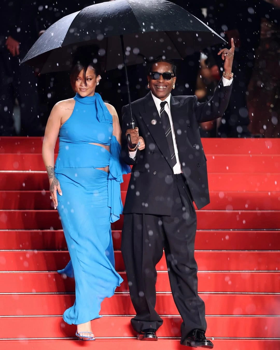 Rihanna and A$AP Rocky made a dramatic entrance at the Cannes Film Festival, turning the iconic red carpet into their own personal movie scene. With umbrellas up and flashbulbs popping, the superstar couple braved the downpour in jaw-dropping style.