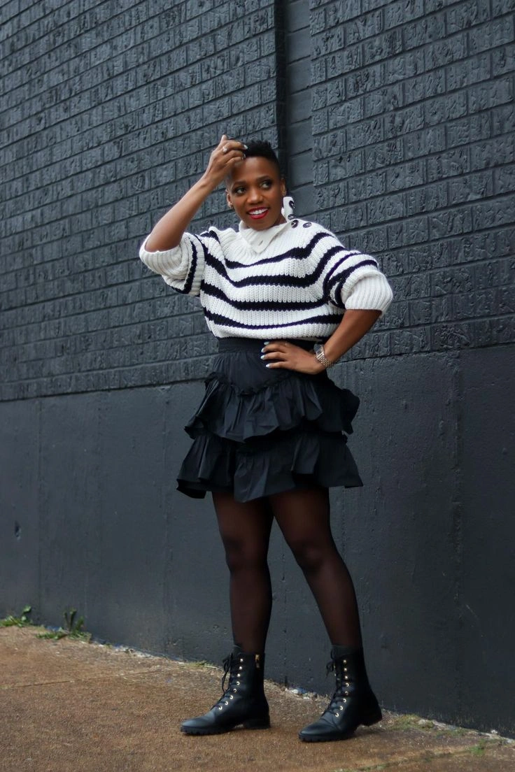 For a cool contrast, style heavy combat boots with a lightweight midi or maxi skirt. This combo is both edgy and romantic, giving you a perfect balance of hard and soft elements.