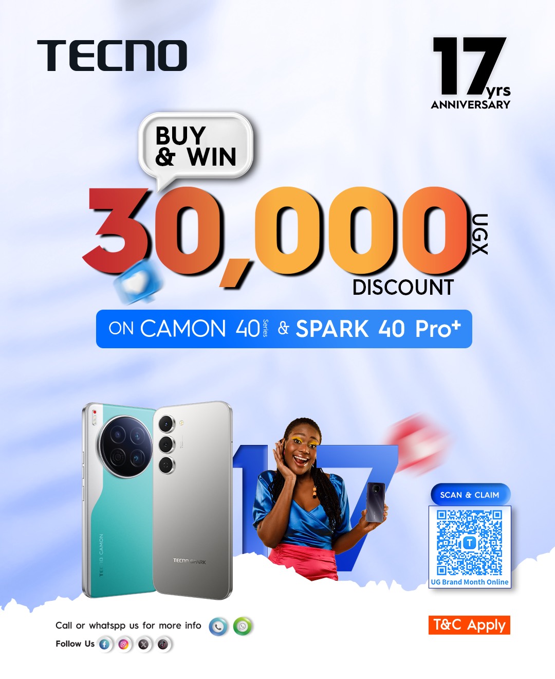 • Massive UGX 30,000 Discounts on the CAMON 40 Series and SPARK 40 Pro+, these can be claimed through this link https://wap.tspot.tecno.com/webApp/BMActiveUG?channel=SCAN_CODE_ON_SHOP