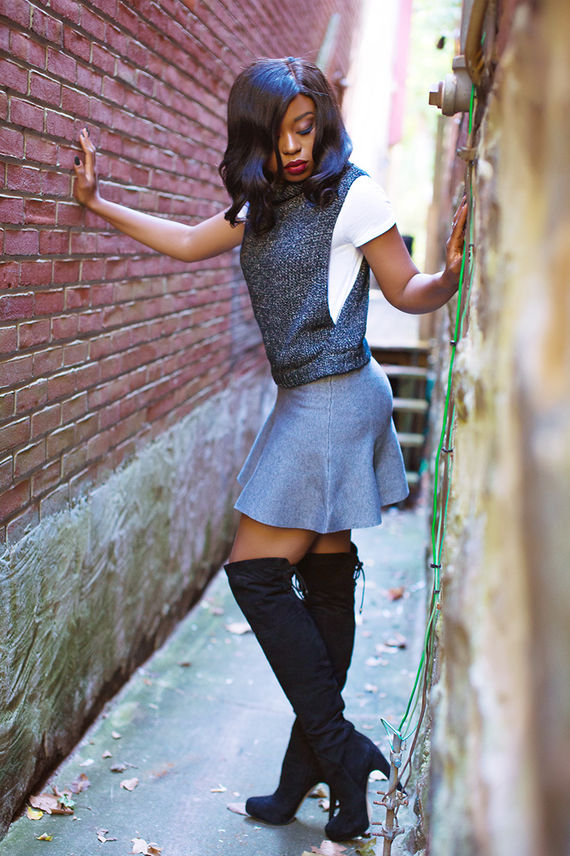 - Hue on hue styling – Add a subtle touch of glamour to your monochromatic look by wearing it with a pair of thigh high boots. This helps draw attention away from the boots but to the entire look as a whole.