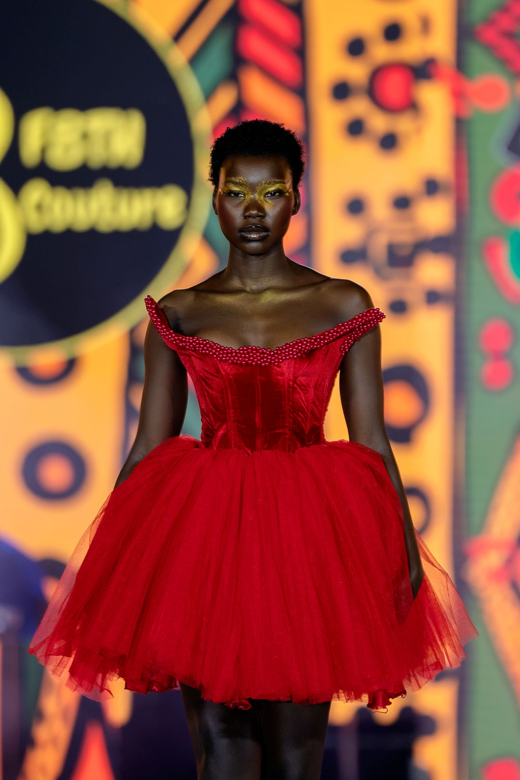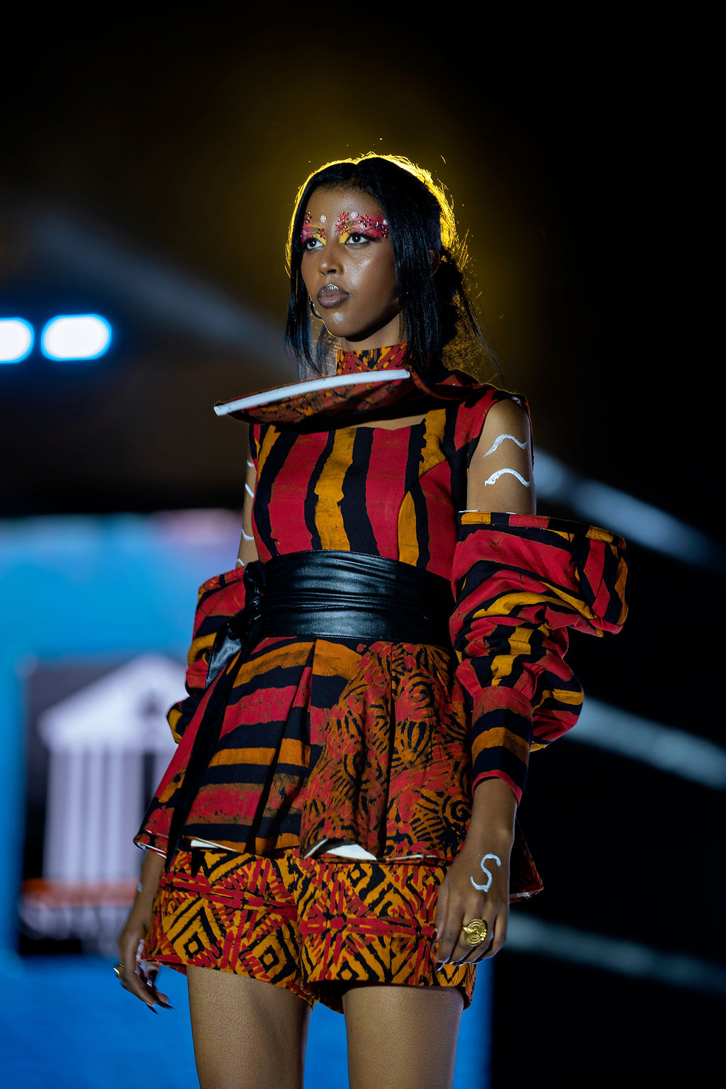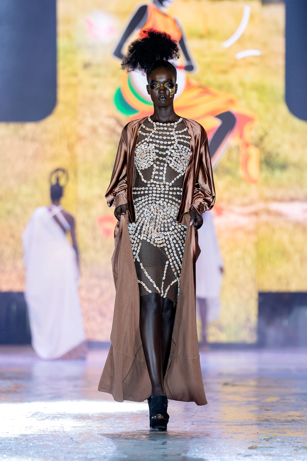 Complementing the face was the structural genius of Hair by Zziwa. The “architectural afrocentric” styles were a highlight—each model sported a unique silhouette that celebrated texture and height, contributing to a cohesive, high-fashion atmosphere.