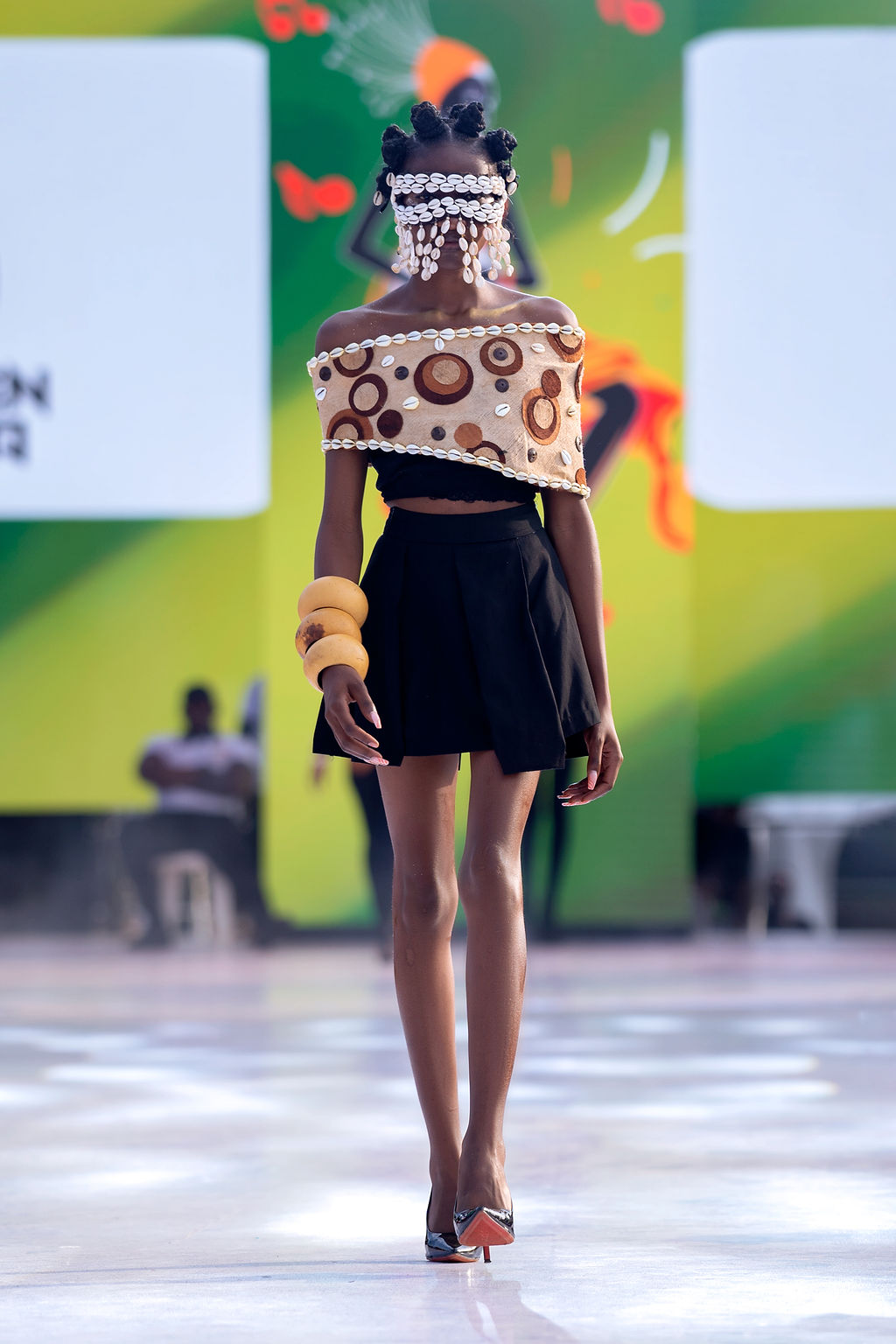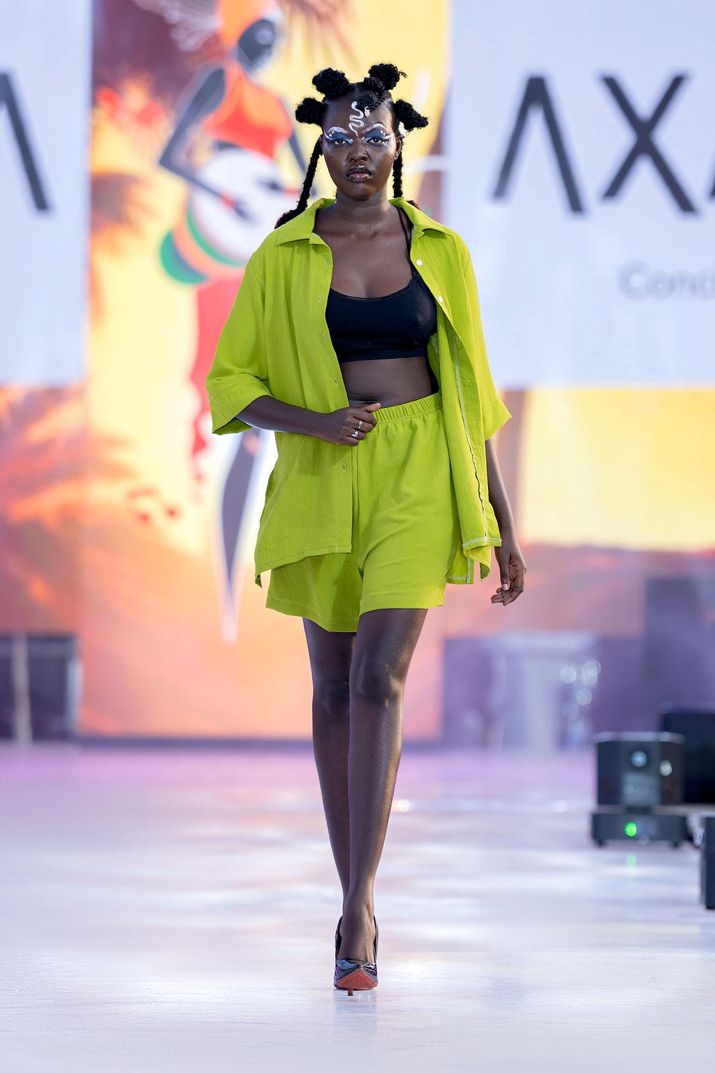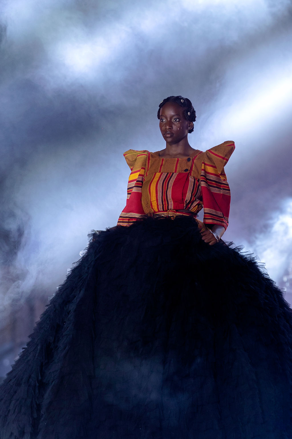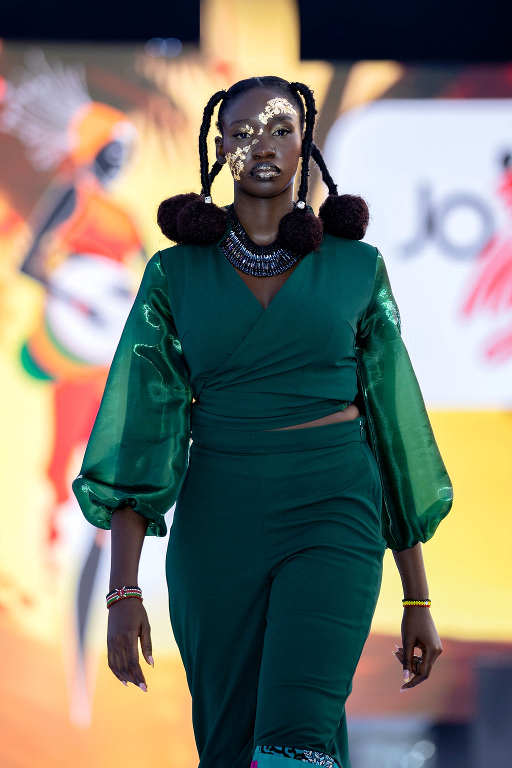 Complementing the face was the structural genius of Hair by Zziwa. The “architectural afrocentric” styles were a highlight—each model sported a unique silhouette that celebrated texture and height, contributing to a cohesive, high-fashion atmosphere.