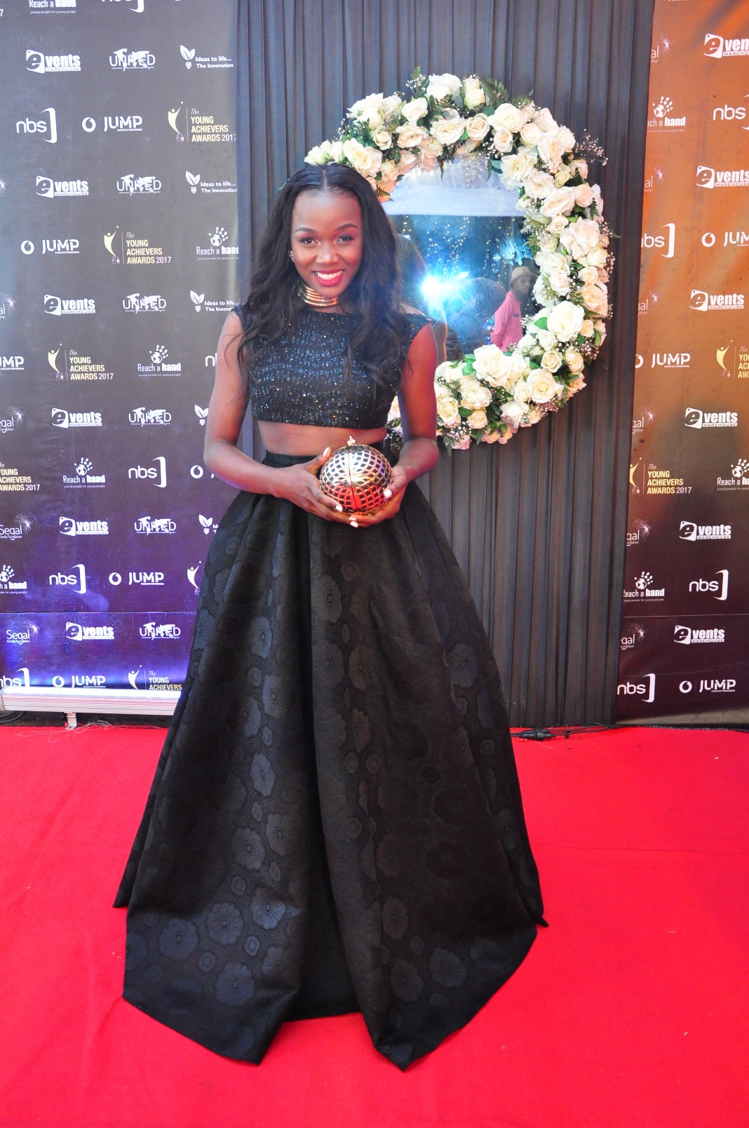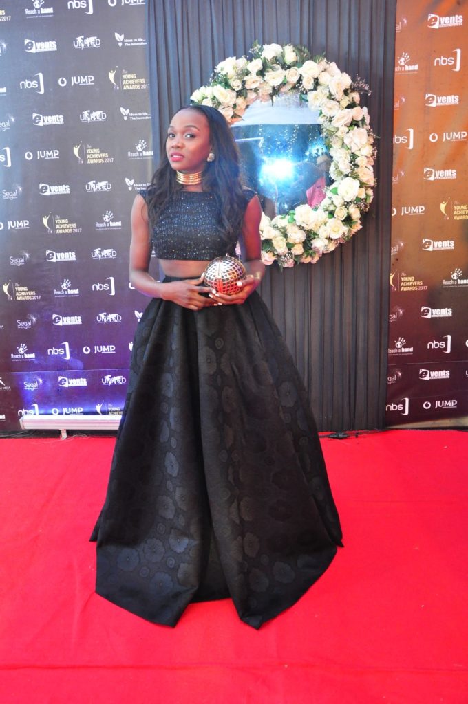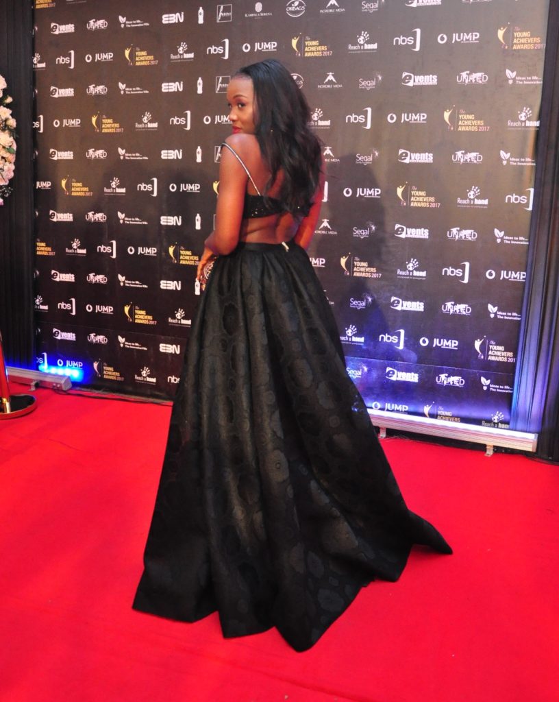 Ras Kasozi is undoubtedly one of the most creative fashion geniuses Uganda can offer. This is why he’s fast becoming every celebrity’s go-to dressmaker for red carpet appearances and public events. At the Young Achievers Awards Gala last night, the star designer outfitted socialite Sandra Lexy in a two piece look that literally won the red carpet. The black ensemble featured a sequined black cropped top and a floor grazing skirt. The skirt had this flower detail that fades out when you draw away. The top had an open back detail baring her back.