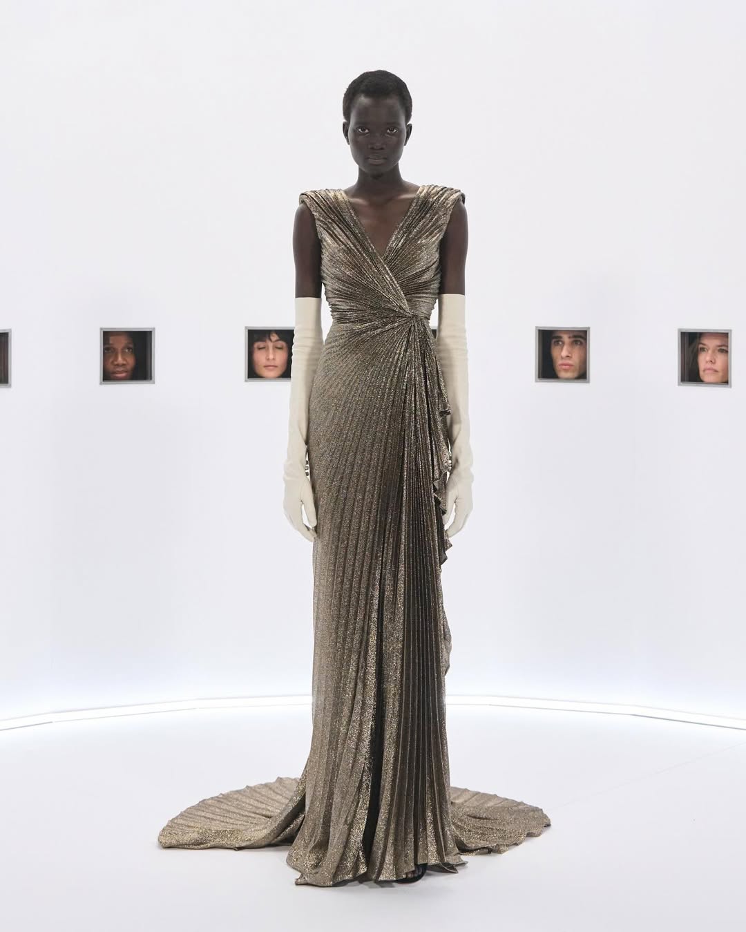 This setup made the show feel like a real fashion peep show. Everyone had to focus hard and wait their turn to see the next piece. It wasn’t like watching models walk down a long catwalk. Instead, viewers had a close, almost private look at each outfit one tiny detail at a time.