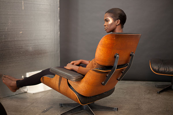 We shot in Wembley studio. The idea behind the story was to have a middle ground between a fashion feel but still keep it a beauty shoot. That is where the props came in – metallic makeup can very easily look dated and 90’s but by incorporating unexpected elements such as the Eames chair, it brought a 50’s retro feel that provided contrast. The crops of the images were also intended to move away from the usual flow of tight crops used in classic beauty shoots.